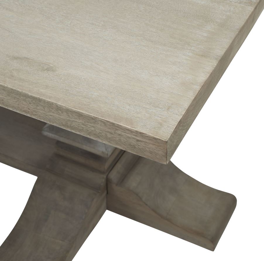 The Copgrove Collection effortlessly blends classic style with contemporary touches. Inspired by French-style furniture, this dining table exudes elegance with its washed, bleached finish and sleek black ironwork handles. Its versatile design allows it to seamlessly integrate into various home décor styles, providing a sophisticated focal point that your customers will adore.