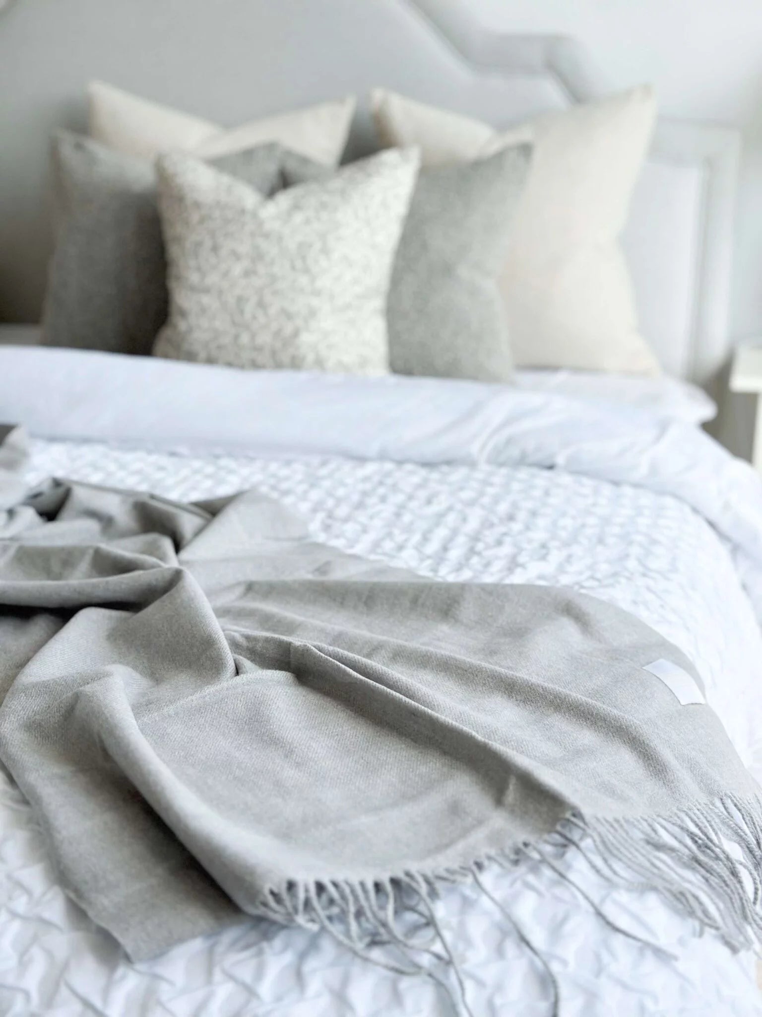 Pamper yourself or a loved one with the Della Grey Decorative Throw. Immerse yourself in the indulgent embrace of 100% cashmere, and elevate your living space with this exquisite throw where sophistication meets supreme softness.