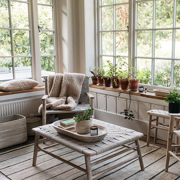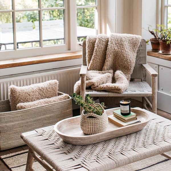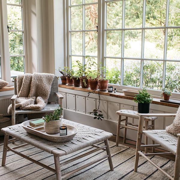 The Kibo Coffee Table requires simple love and care. For the rope parts, a low power vacuum and spot cleaning will do, while the mango wood frame stays pristine with a quick dusting.
