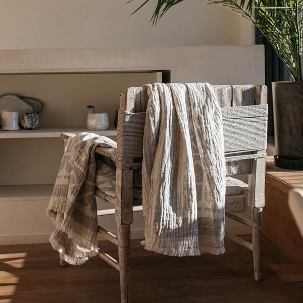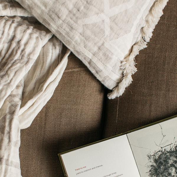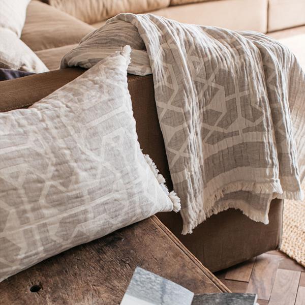 With its natural colour and large taupe geometric pattern, the Tibble Throw effortlessly brings a modern yet timeless charm to your living space. Whether draped over your sofa or folded neatly at the foot of your bed, it creates a warm, inviting atmosphere.